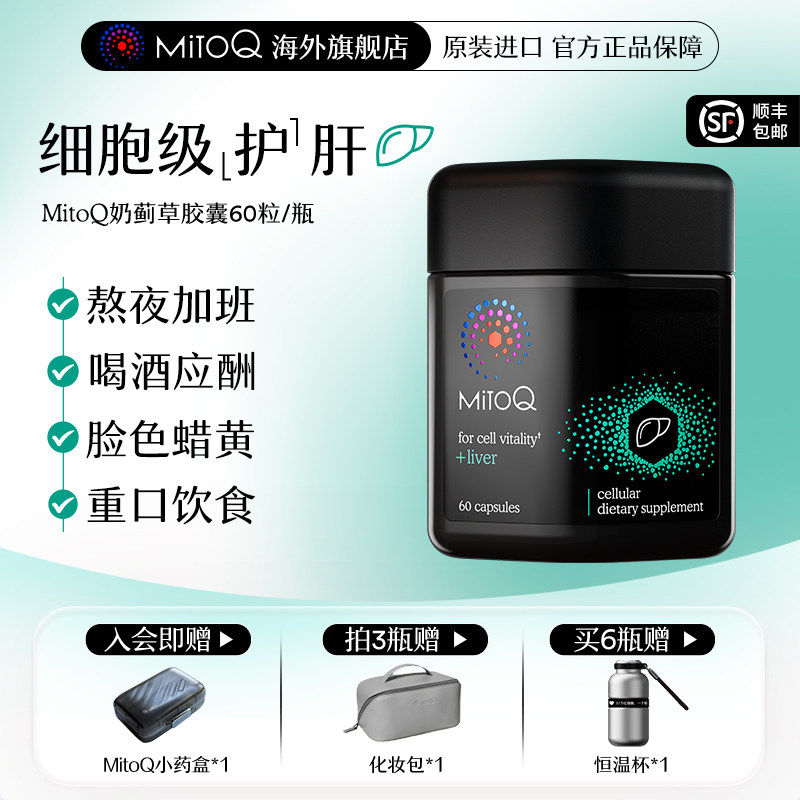 MitoQ官方进口护肝奶蓟水飞蓟胆碱熬夜加班喝酒60粒进口保健品