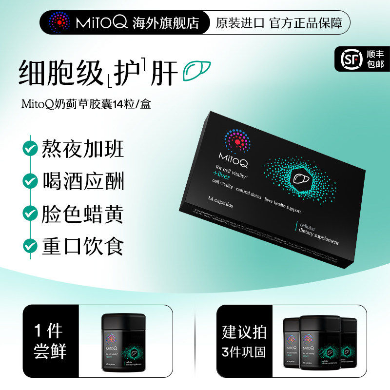 MitoQ官方奶蓟草进口水飞蓟护肝熬夜加班解酒醒酒14粒进口保健品