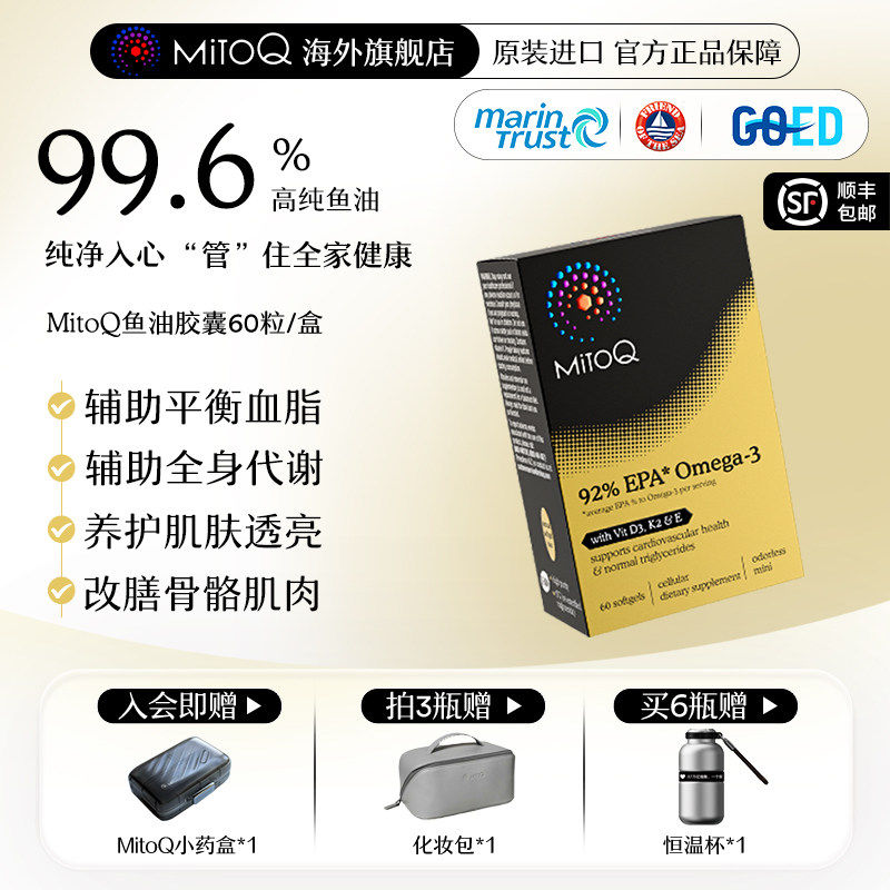 MITOQ99.6%高纯鱼油rTG型92%浓度EPAomega欧米茄3 60粒进口保健品