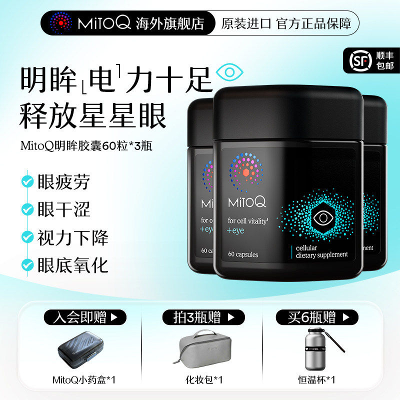 【3件巩固装】MitoQ官方明眸胶囊蓝莓叶黄素疲劳干护眼进口保健品