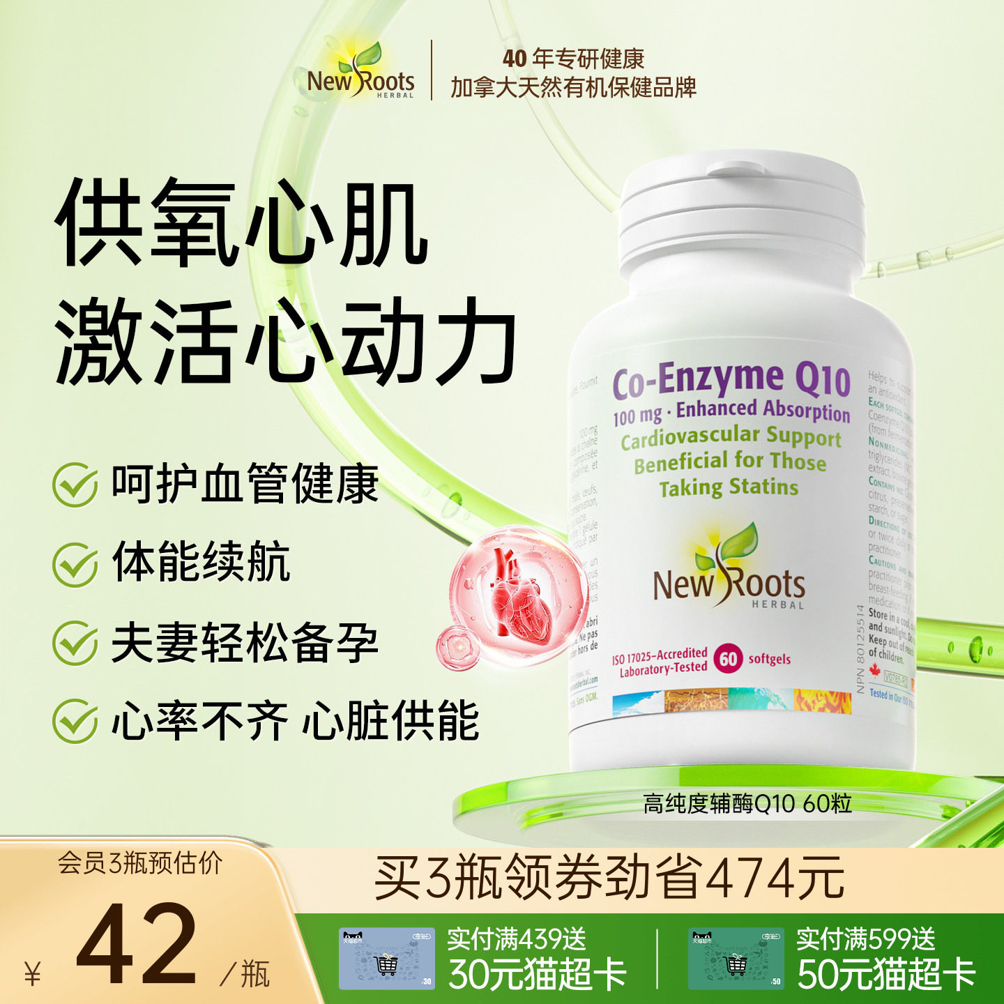 NewRoots高纯度辅酶Q10保护心血管护心加拿大进口保健品 60粒