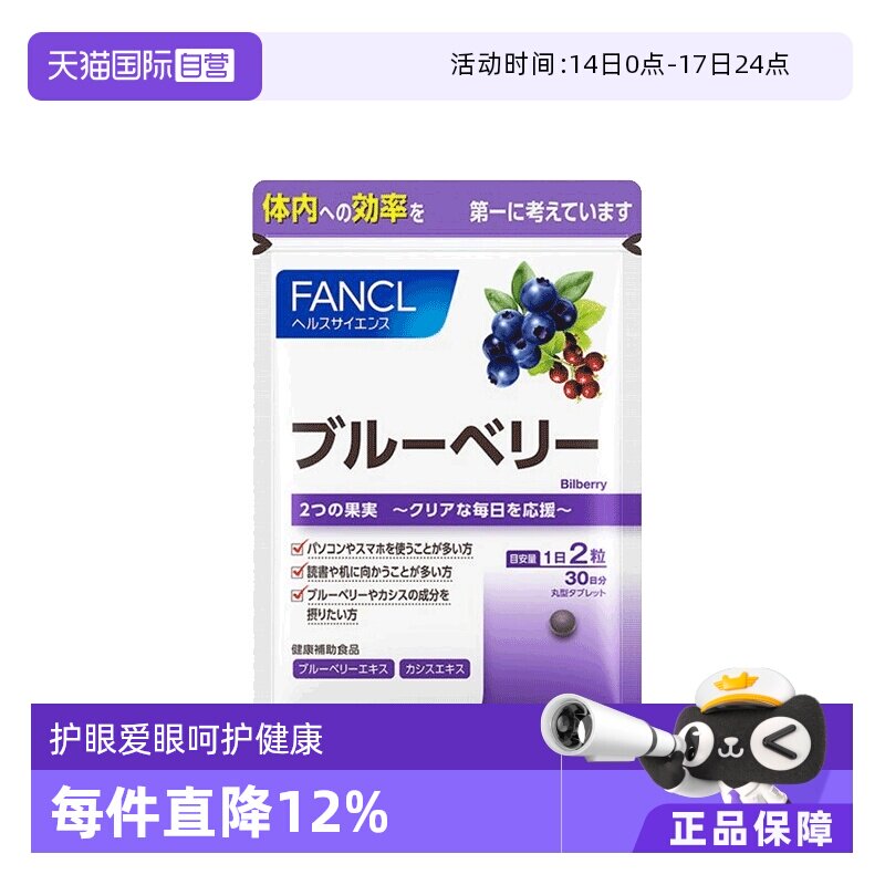 【自营】日本FANCL芳珂蓝莓精华片护眼丸60粒/袋进口保健品