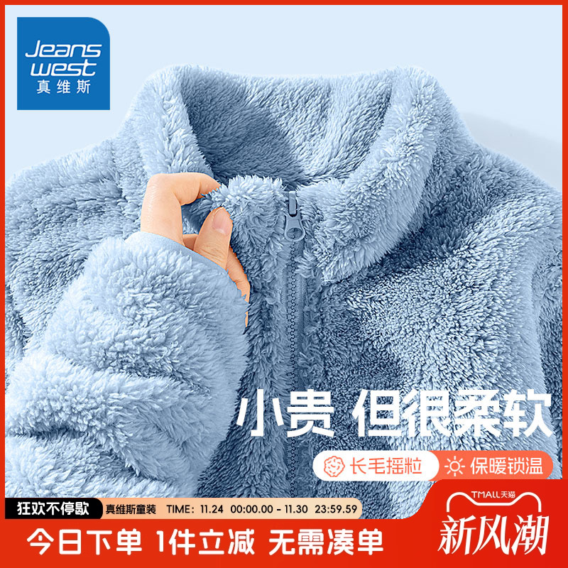 真维斯童装男童外套秋冬款大童一体绒加厚开衫儿童加绒保暖立领衣