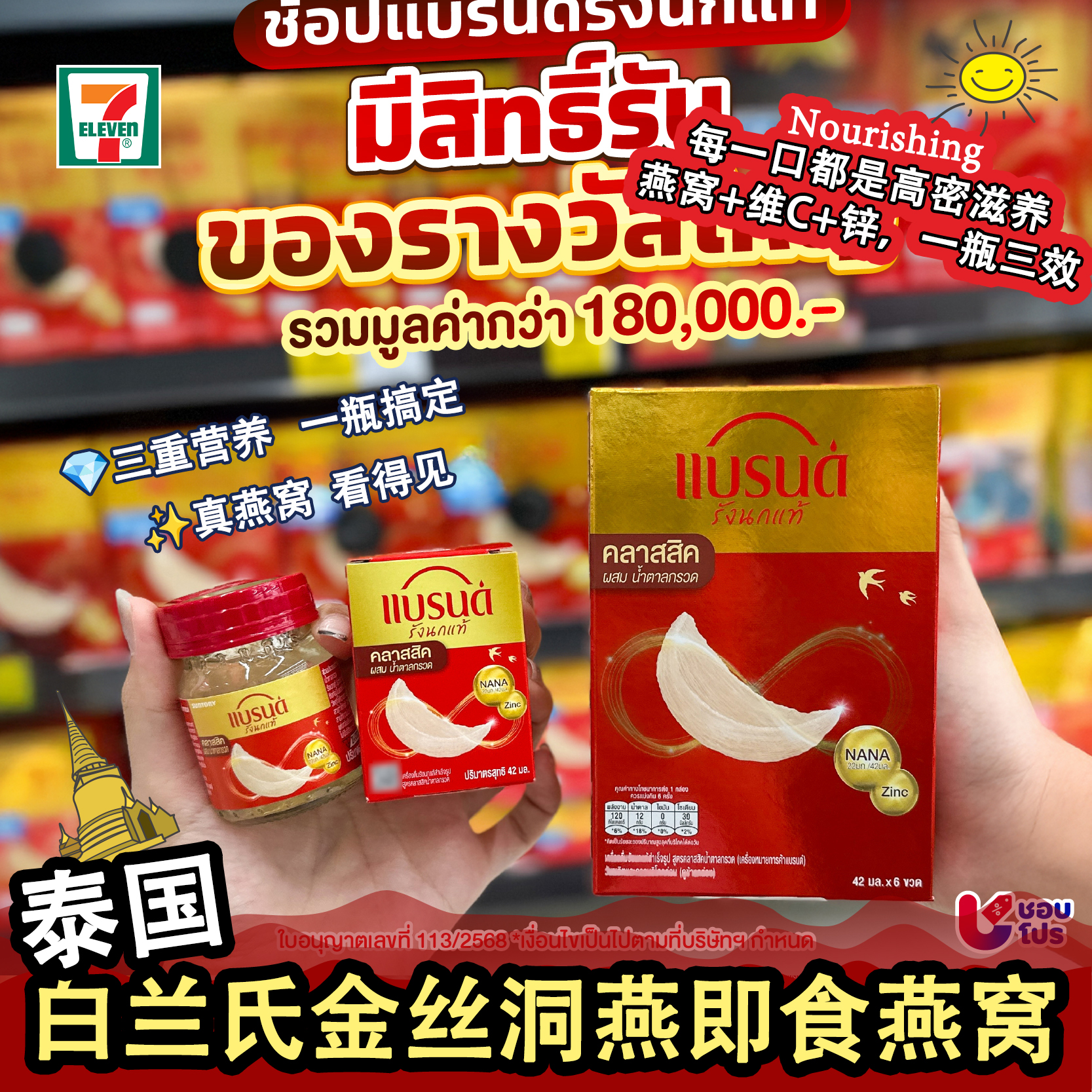 泰国原装Brand's白兰氏即食燕窝饮品冰糖42mlx6瓶装711便利店超市
