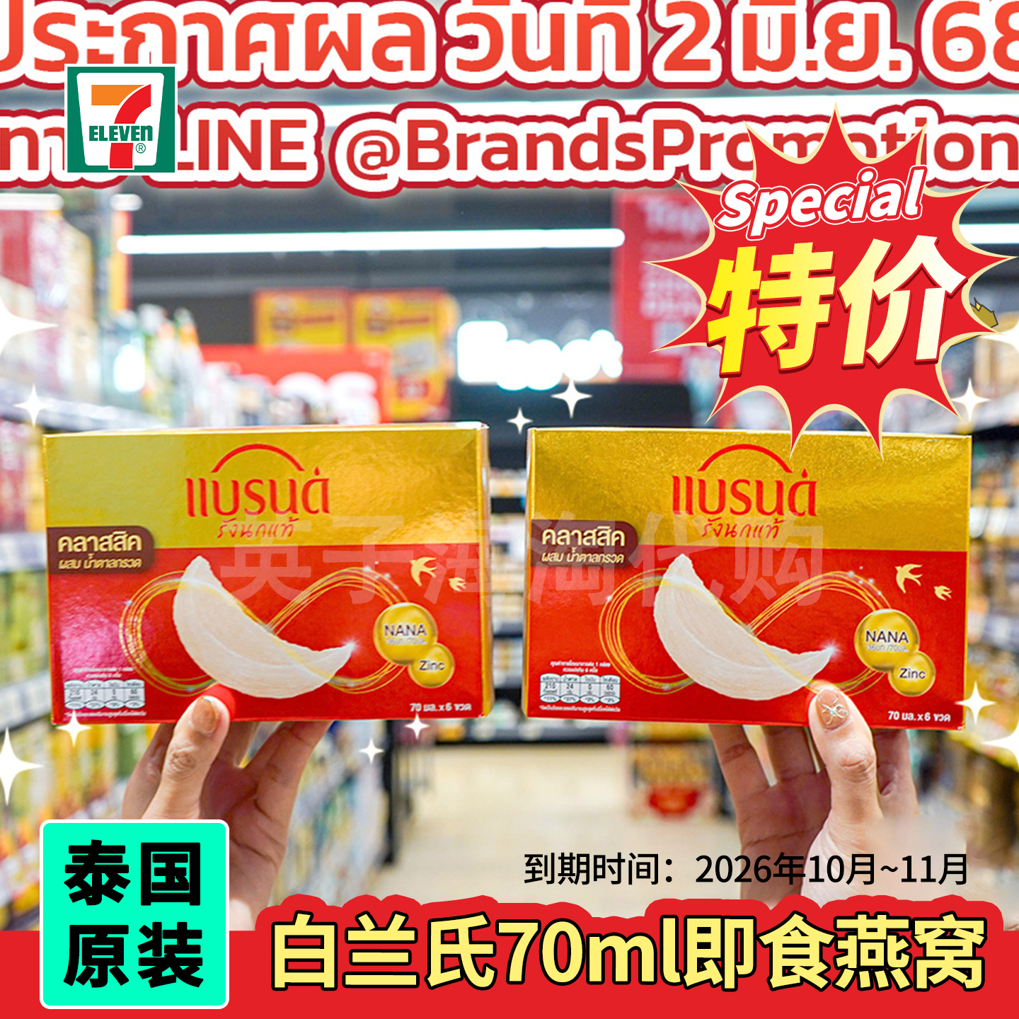 泰国原装白兰氏即食燕窝Brand's瓶装饮品711同款70ml大瓶冰糖无糖