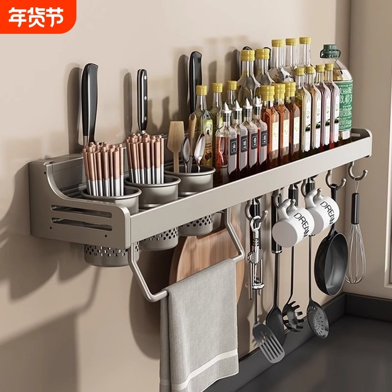 厨房刀架多功能置物架刀具用品收纳架放刀架壁挂式调料太空铝挂钩