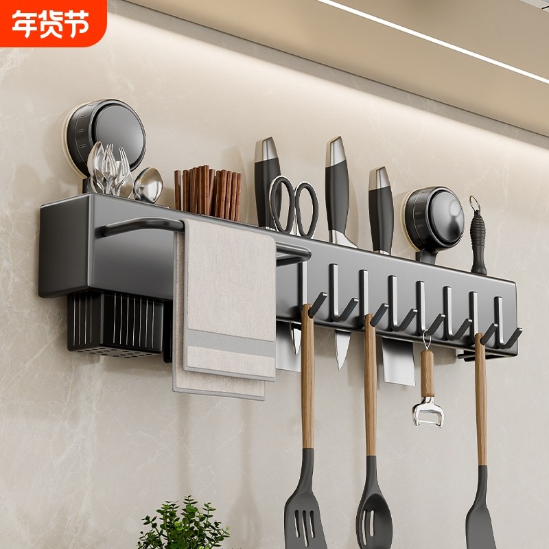 厨房多功能置物架 刀架挂架 筷子刀具用品收纳架一体免打孔壁挂式