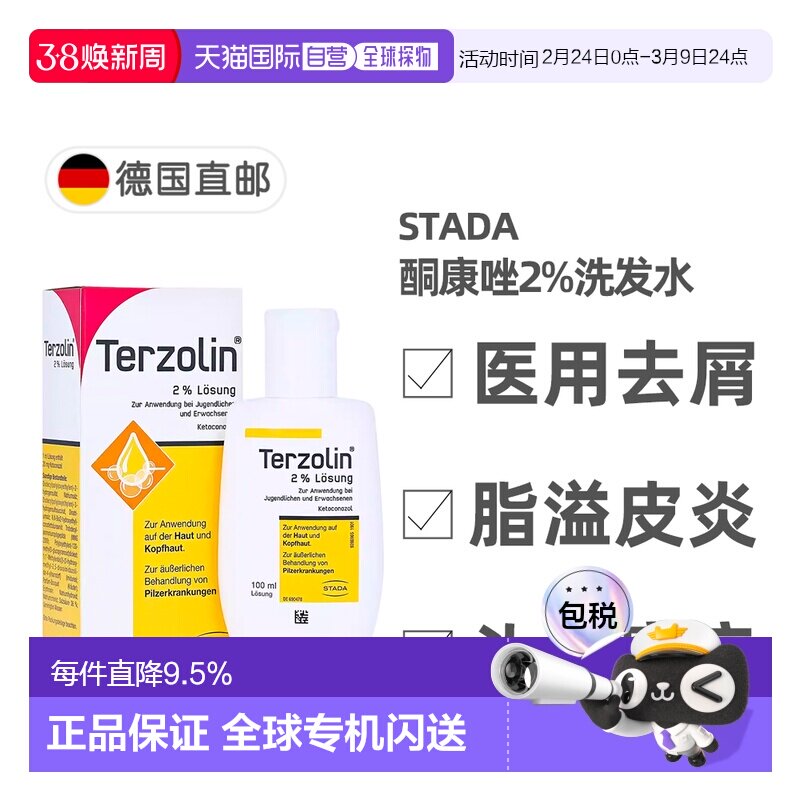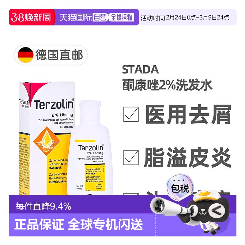 欧洲直邮德国药房Stada去屑2%酮康唑头皮癣脂溢性皮炎洗发水60ml