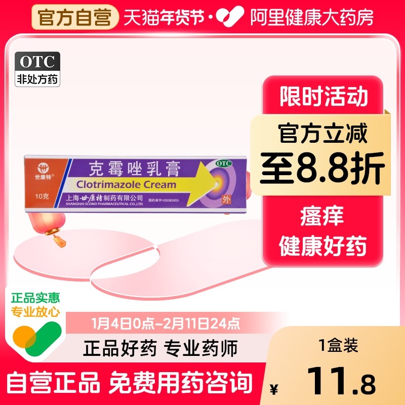 世康特克霉唑乳膏牛皮癣男性药膏软膏专用止痒头皮癣手癣头癣10g