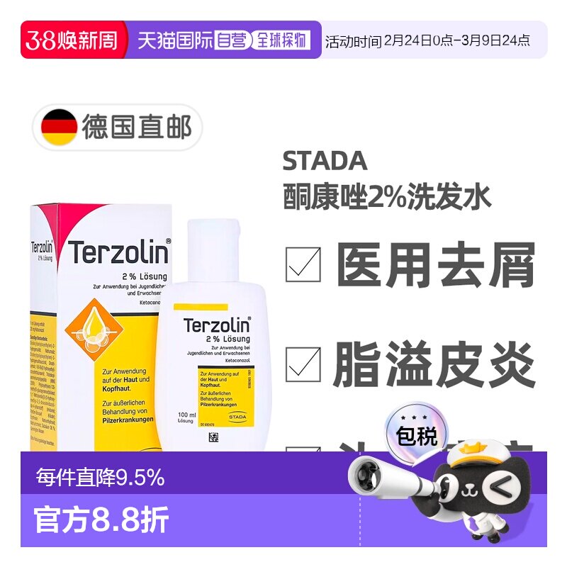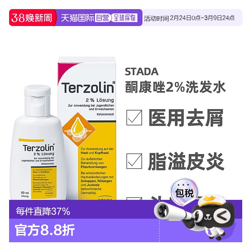 欧洲直邮德国Stada去屑2%酮康唑头皮癣脂溢性皮炎酸酯洗发水60ml
