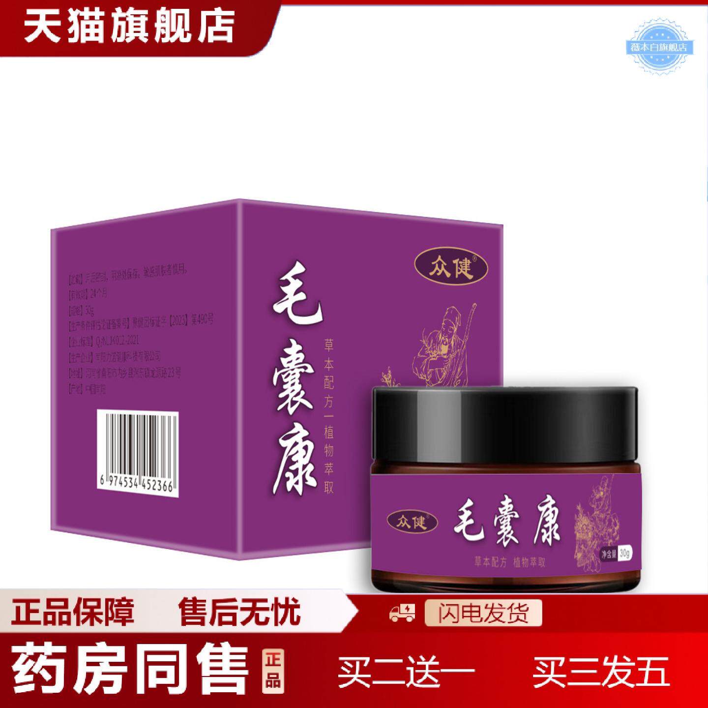 天猫正品众健膏毛囊毛不适囊膏发痒螨油膏头皮癣豆豆头部背部脸部
