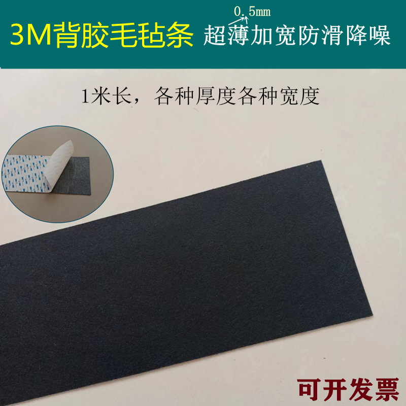 3M背胶毛毡条超薄0.5防滑耐磨保护垫减震防尘密封 桌椅脚垫防撞条