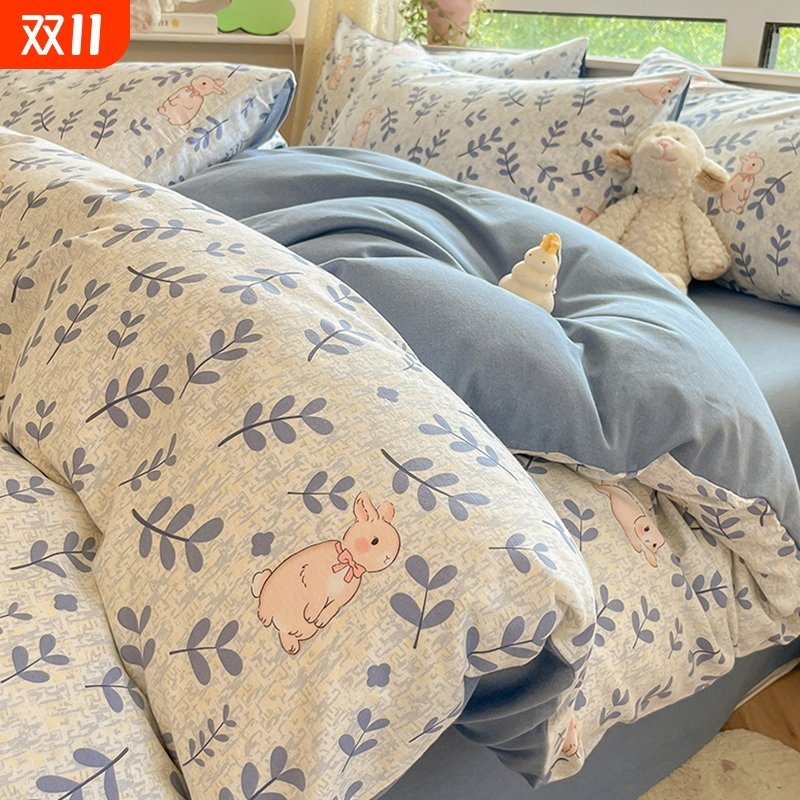 磨毛床上用品四件套2025新款纯棉全棉秋冬季被套床单三件套床笠