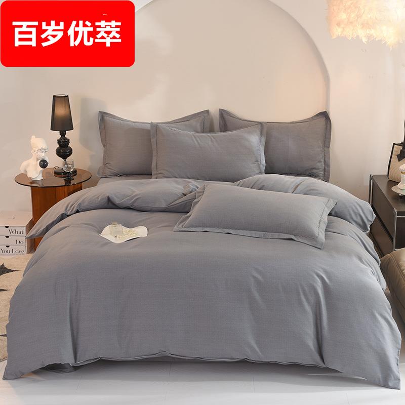 四件套纯棉全棉床单被套双人春秋简约磨毛床上用品单人宿舍三件套