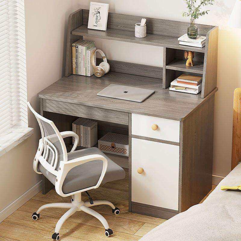 书桌书架一体桌子带书柜台式电脑桌家用卧室学生学习写字桌椅组合