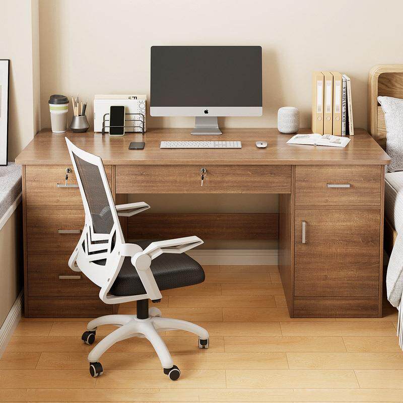 现代简约办公桌单人办公室职员台式电脑桌家用经济书桌带锁带抽屉