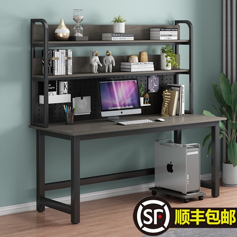 台式电脑桌家用书桌带书架一体组合学生写字小户型学习桌子洞洞板