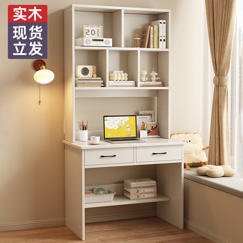 实木书桌书架一体小户型台式电脑桌家用办公桌学生卧室学习写字桌