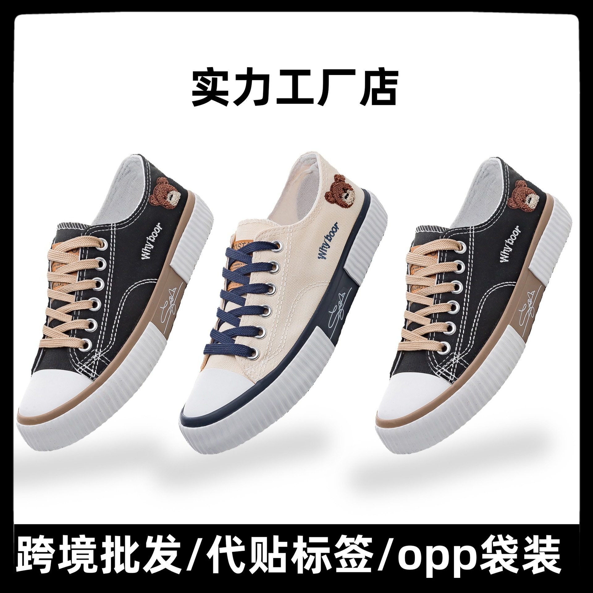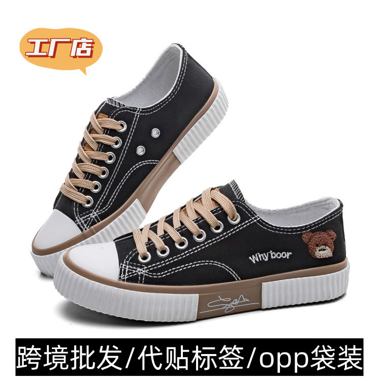 2023春季新款小熊低帮帆布鞋女学生韩版百搭休闲板鞋子潮运动球鞋