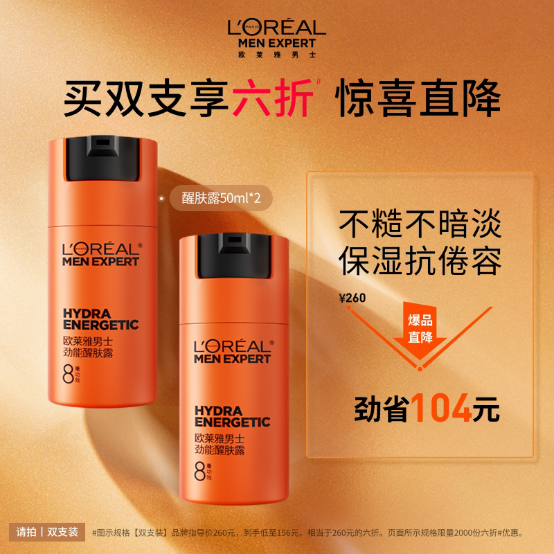 欧莱雅男士劲能醒肤露面霜补水保湿擦脸油乳液护肤品套装官方正品