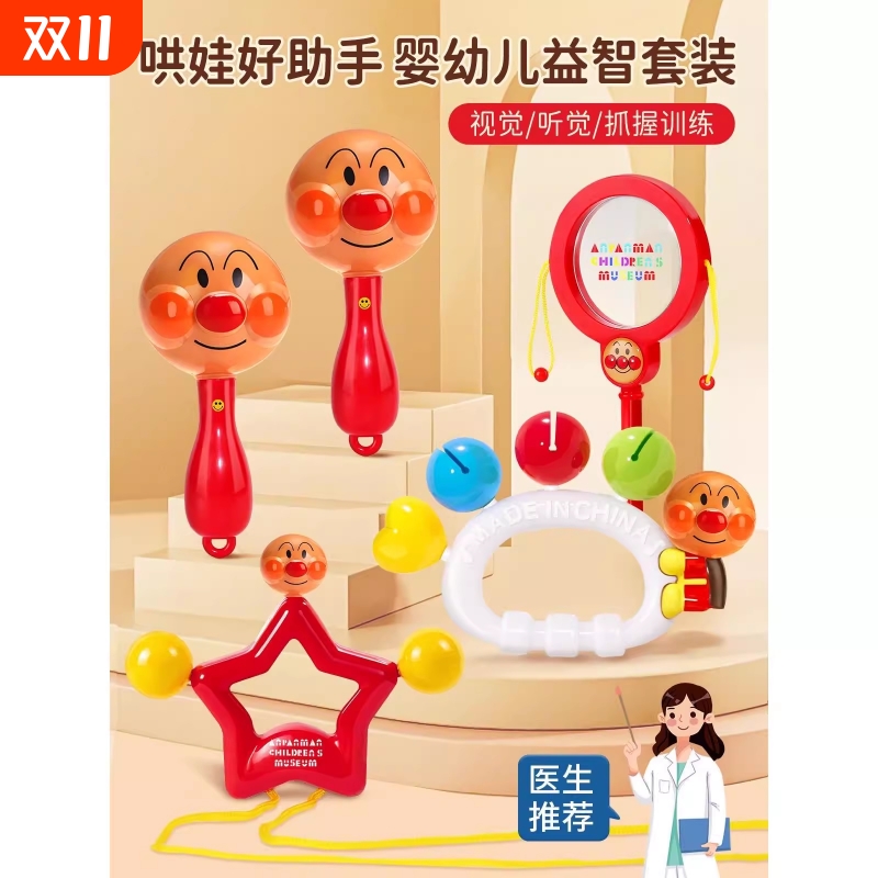 日本面包超人Pinocchio新生婴儿早教手摇铃益智玩具安抚彩色摇铃