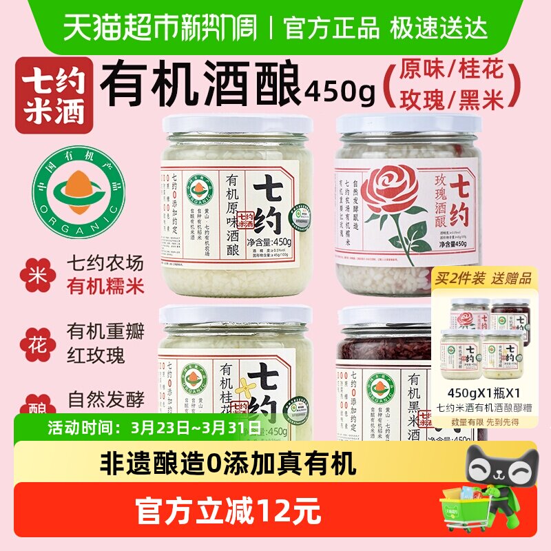 七约米酒有机酒酿0添加月子酒原味桂花玫瑰醪糟米酒女士甜糯米酒