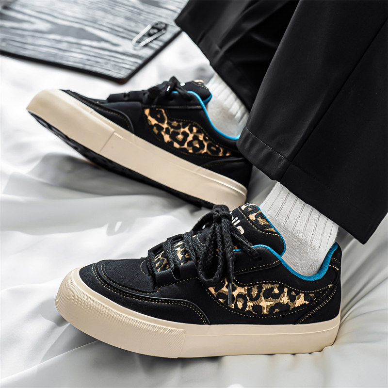 男鞋子潮鞋2025冬季低帮加绒保暖板鞋男生低帮韩版百搭豹纹港风鞋