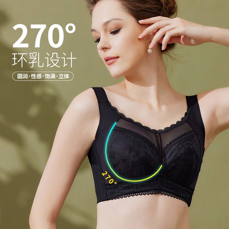 乳胶软钢圈性感蕾丝文胸薄款防下垂收副乳聚拢大胸显小内衣调整型