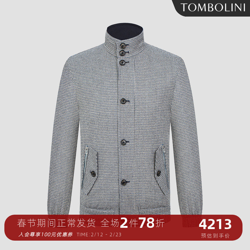 TOMBOLINI/东博利尼秋季新款拼麂皮夹克男士复古时尚休闲格子外套