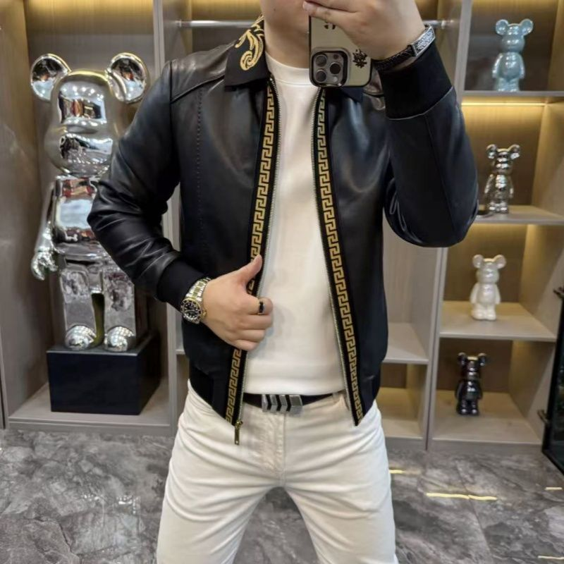 秋冬新款轻奢潮流翻领开衫夹克男士高端痞帅个性时尚帅气皮衣外套