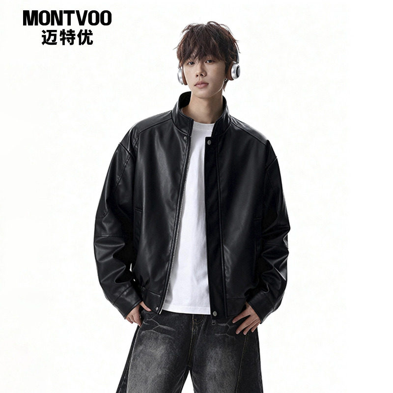 迈特优短款立领PU皮衣夹克男士秋冬cleanfit痞帅高级感机车服外套