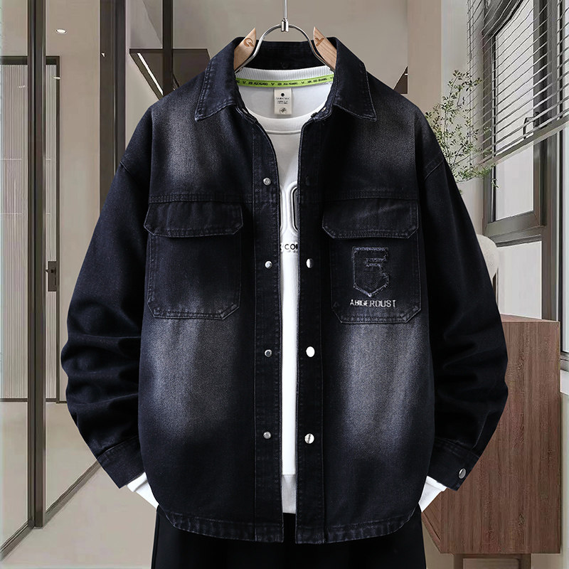 牛仔外套男春秋季新款长袖时尚都市翻领宽松美式复古休闲夹克男士