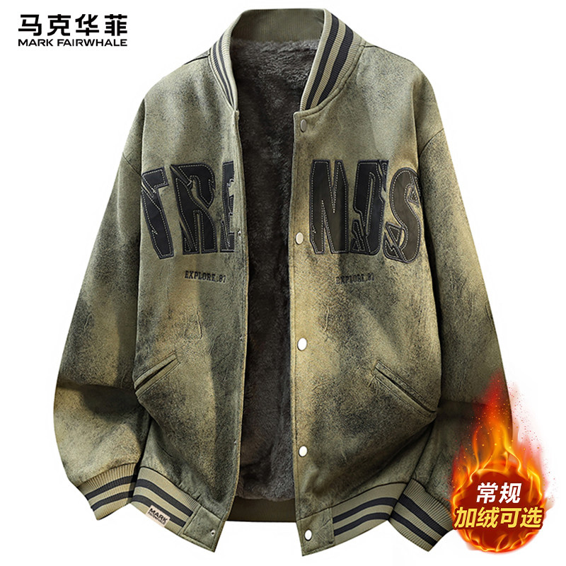 马克华菲美式复古风夹克男士外套2025冬季新款加绒加厚男款棒球服