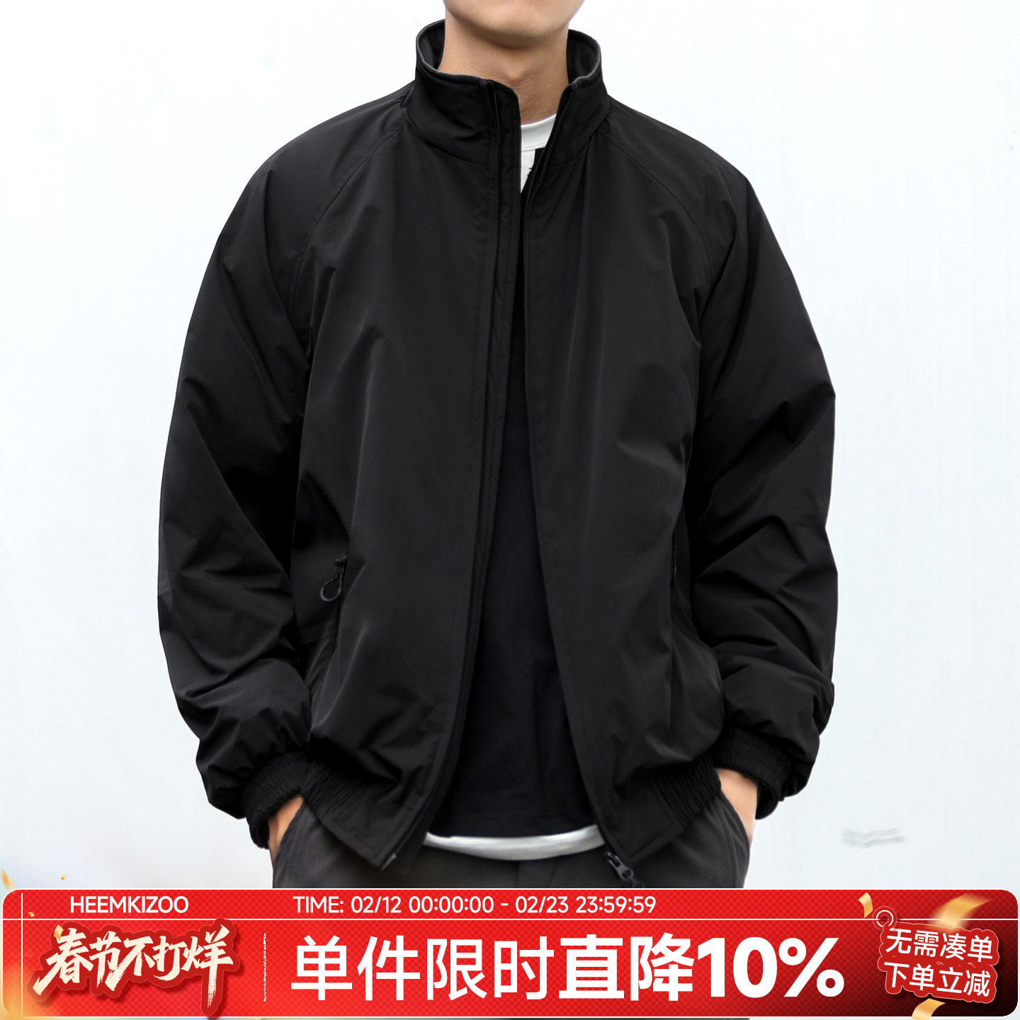 嘿马七作冬季双拉链立领棉服加厚夹克休闲棉衣保暖外套男舒适百搭