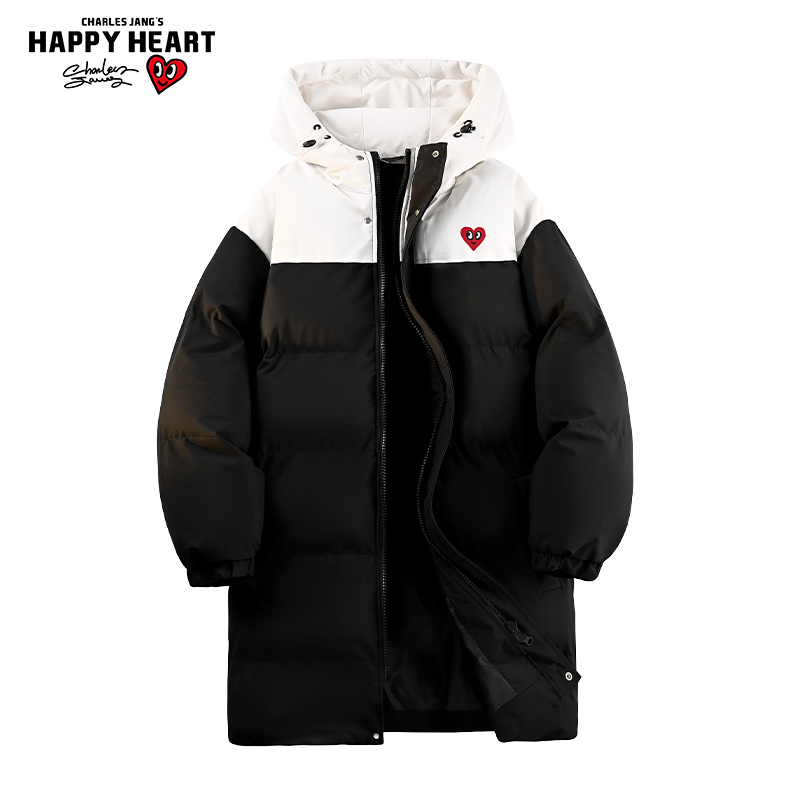 查尔斯桃心中长款棉衣男秋冬季防寒保暖棉袄潮牌新款连帽情侣棉服