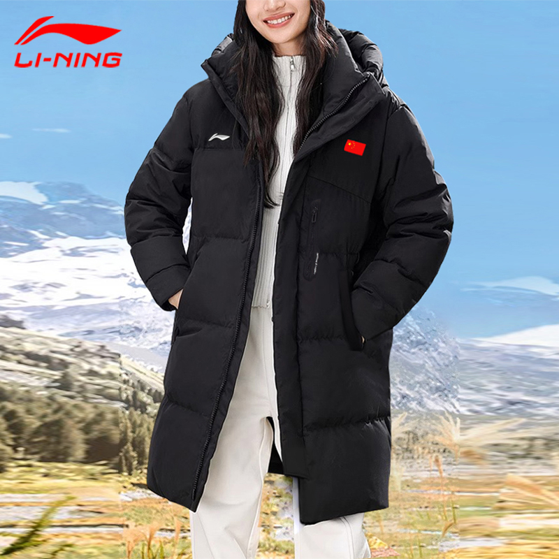 李宁羽绒服男女中长款同2025冬季新国旗款情侣青少年棉衣官网正品