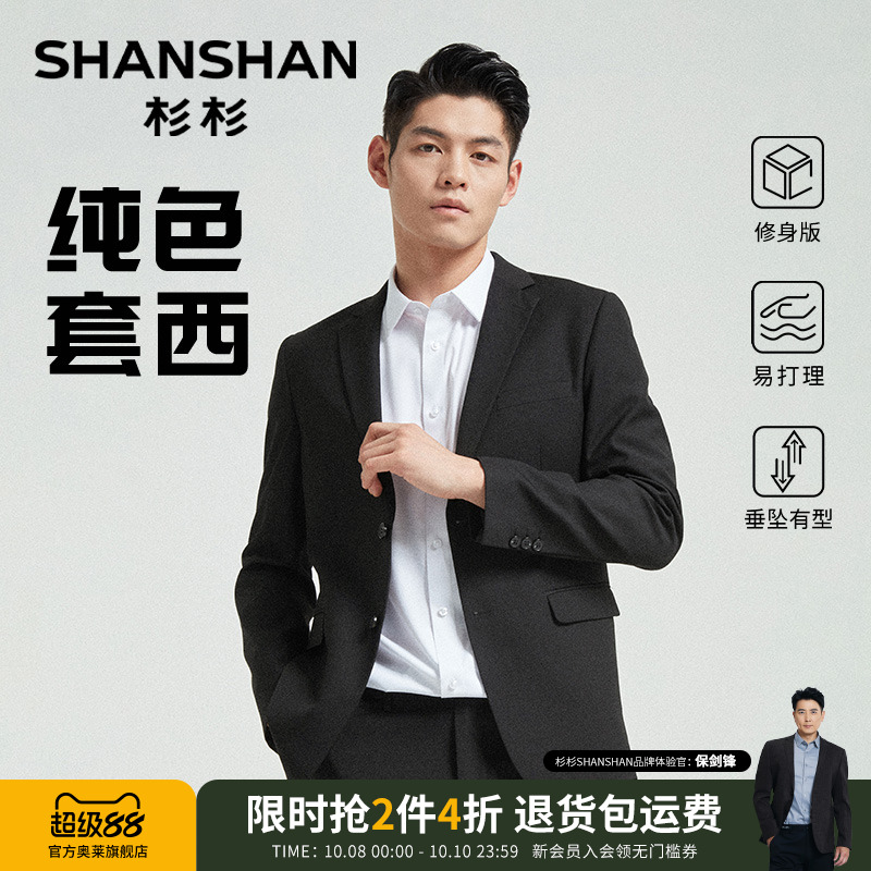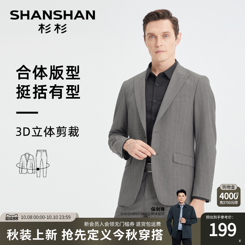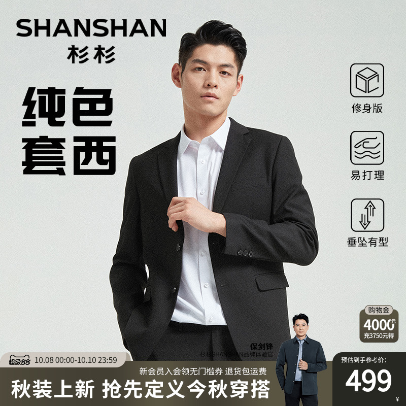 杉杉奥莱西服套装男士2025秋季新款高端结婚礼服新郎正装修身套西