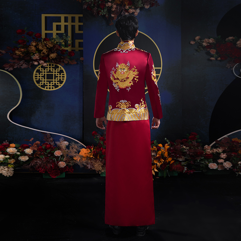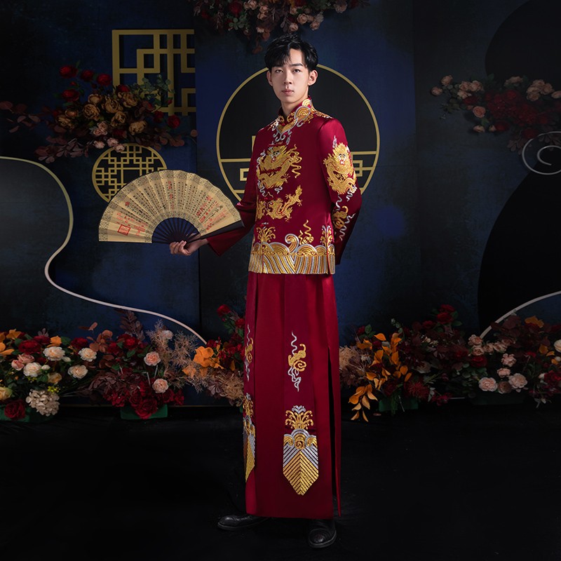 秀禾服男生2025新款中式结婚礼服新郎大码敬酒服龙凤褂男士秀和服