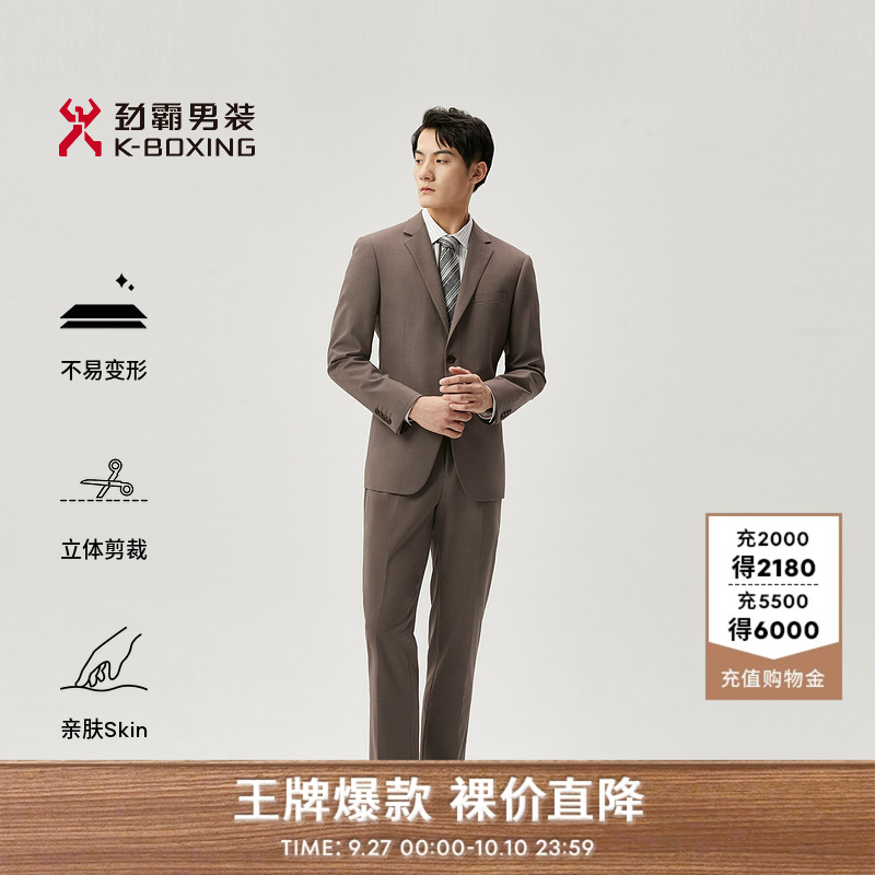 SHANSHAN杉杉男士西服套装结婚礼服新郎婚礼商务西装职业正装卡其