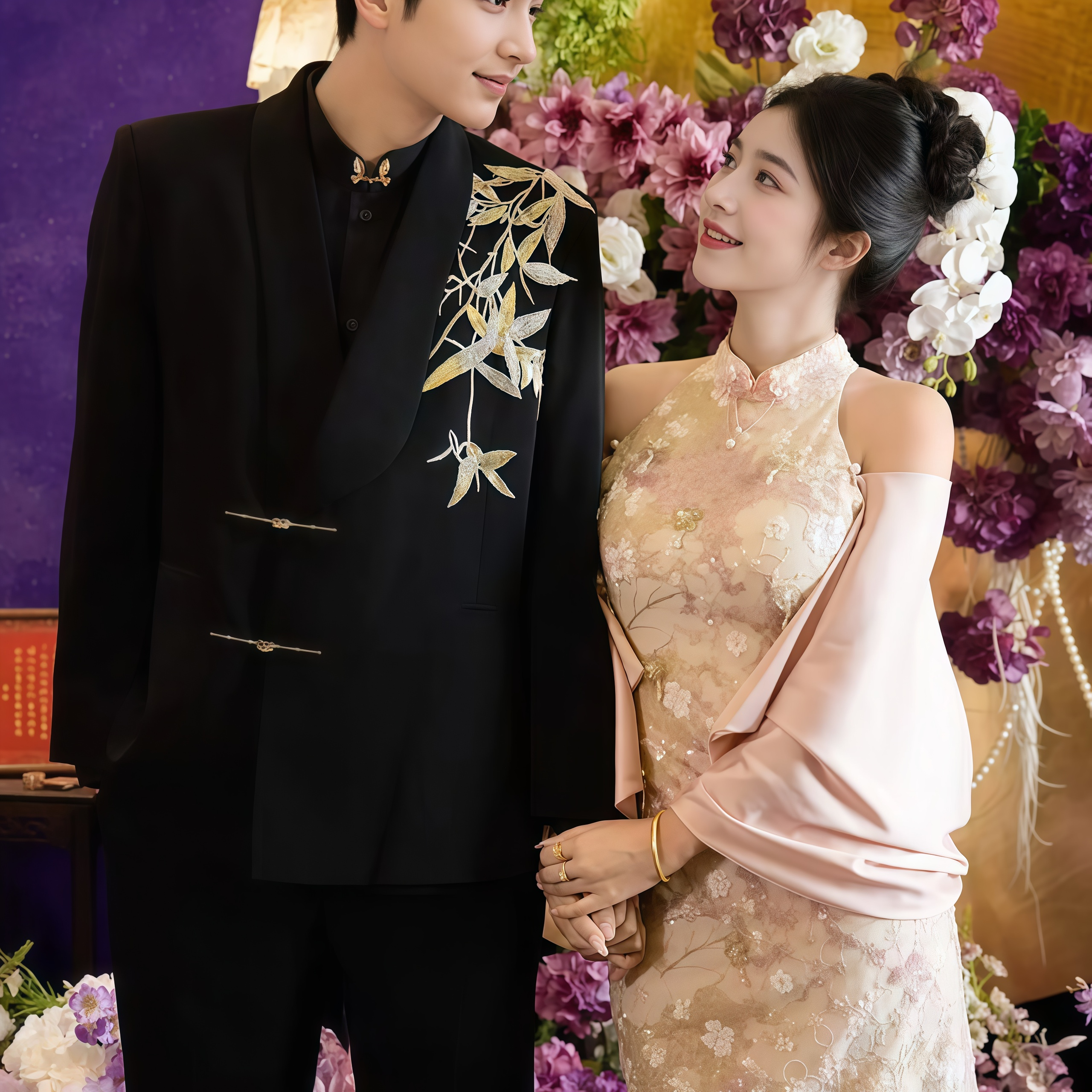 欢喜橙/男士结婚礼服新郎西服套装新中式国风西装男生订婚两件套