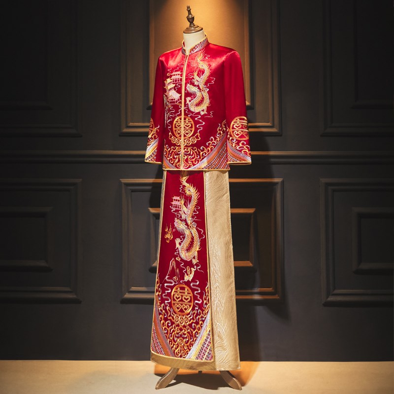 秀禾服男士2024新款中式结婚礼服新郎接亲敬酒服大码唐装男龙凤褂