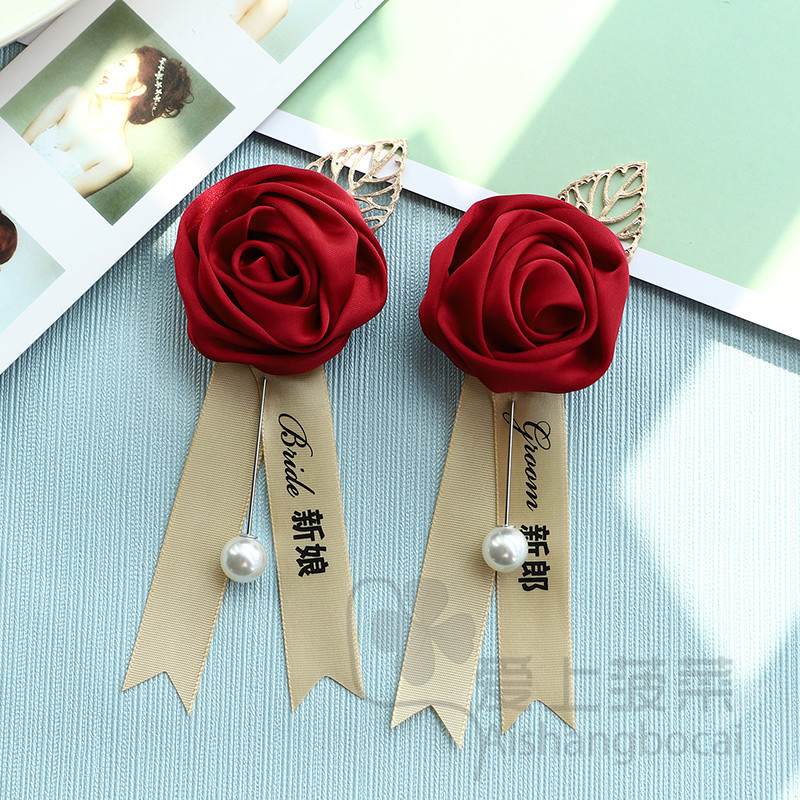 红色中式结婚礼服新郎新娘胸花父亲母亲伴郎伴娘胸针迎亲迎宾贵宾