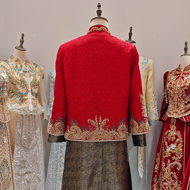 大码红色男士秀禾服2024新款中式结婚礼服新郎接亲敬酒大码唐装