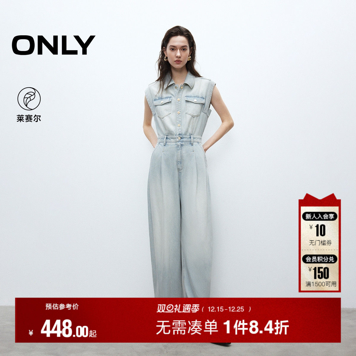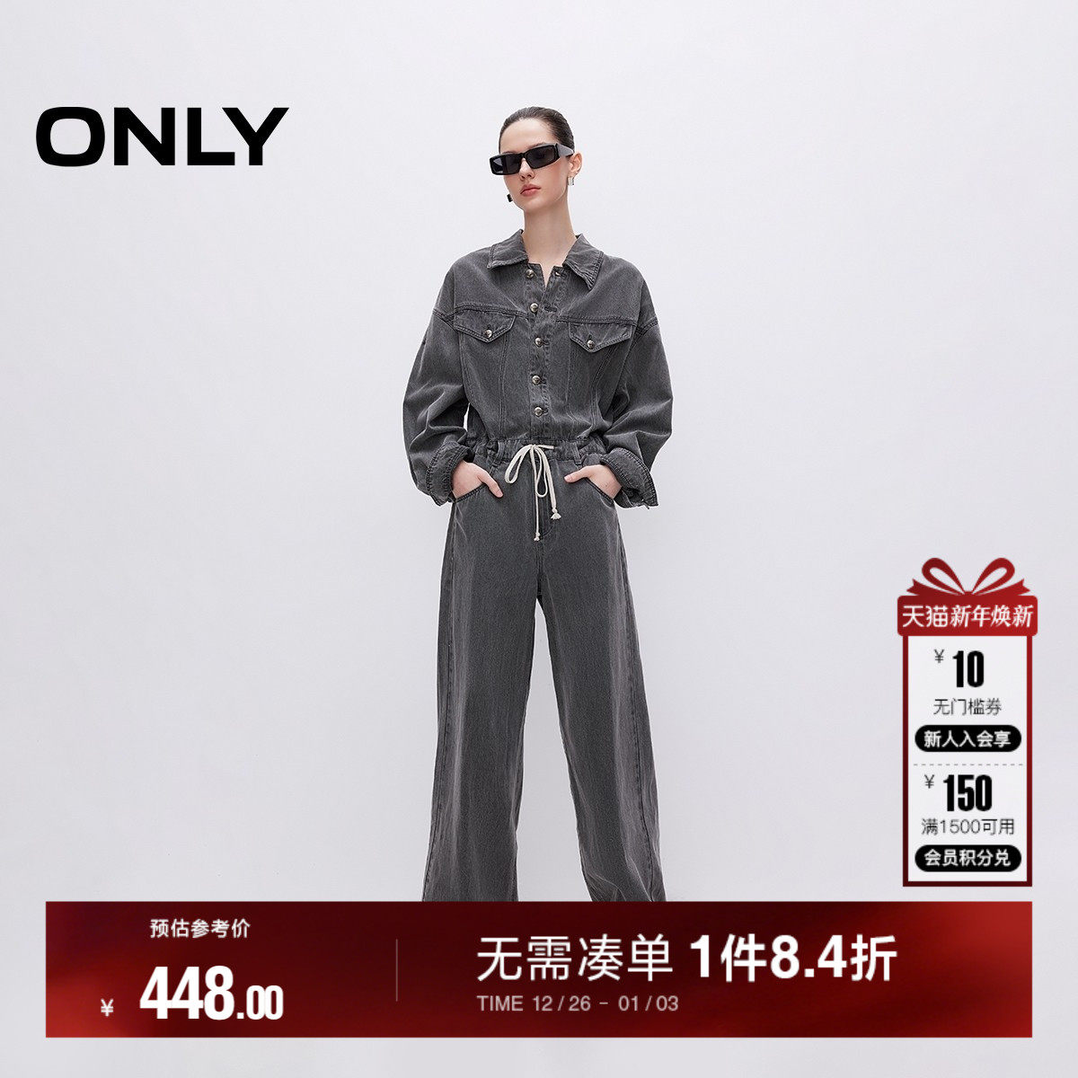 ONLY2025冬季新款莱赛尔复古水洗宽松显瘦阔腿长裤连体裤牛仔裤女