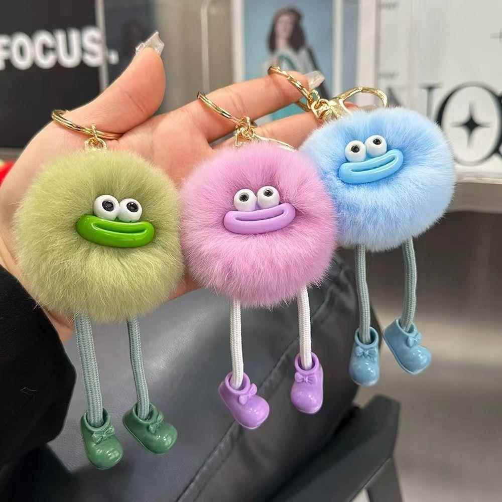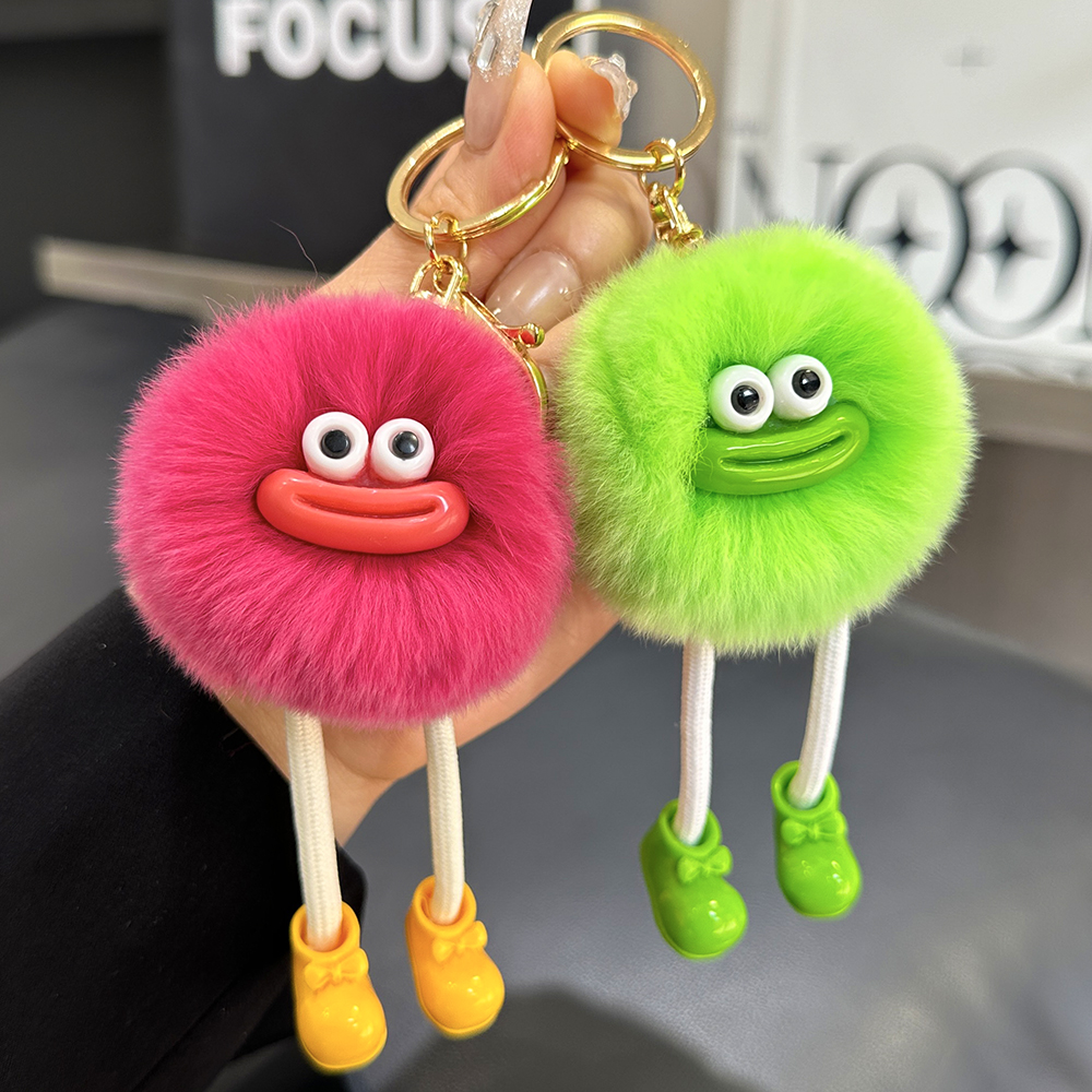 可爱獭兔毛小怪兽汽车钥匙扣挂件韩国毛绒公仔书包包挂饰生日礼物