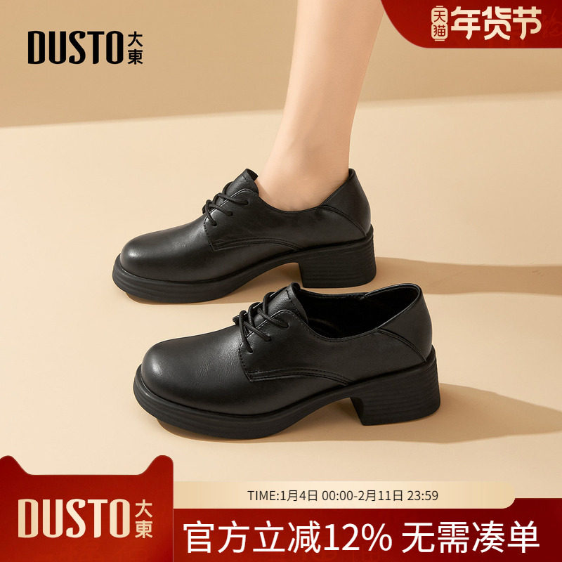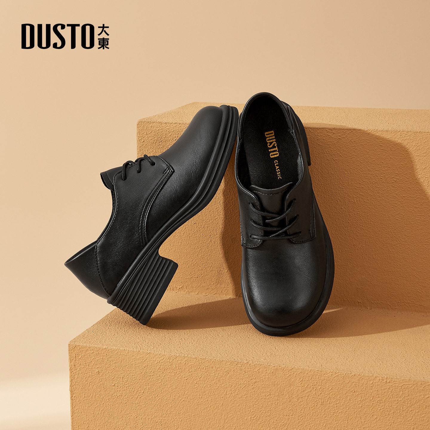 大东英伦风黑色小皮鞋2026春季新款乐福鞋深口女鞋系带布洛克单鞋
