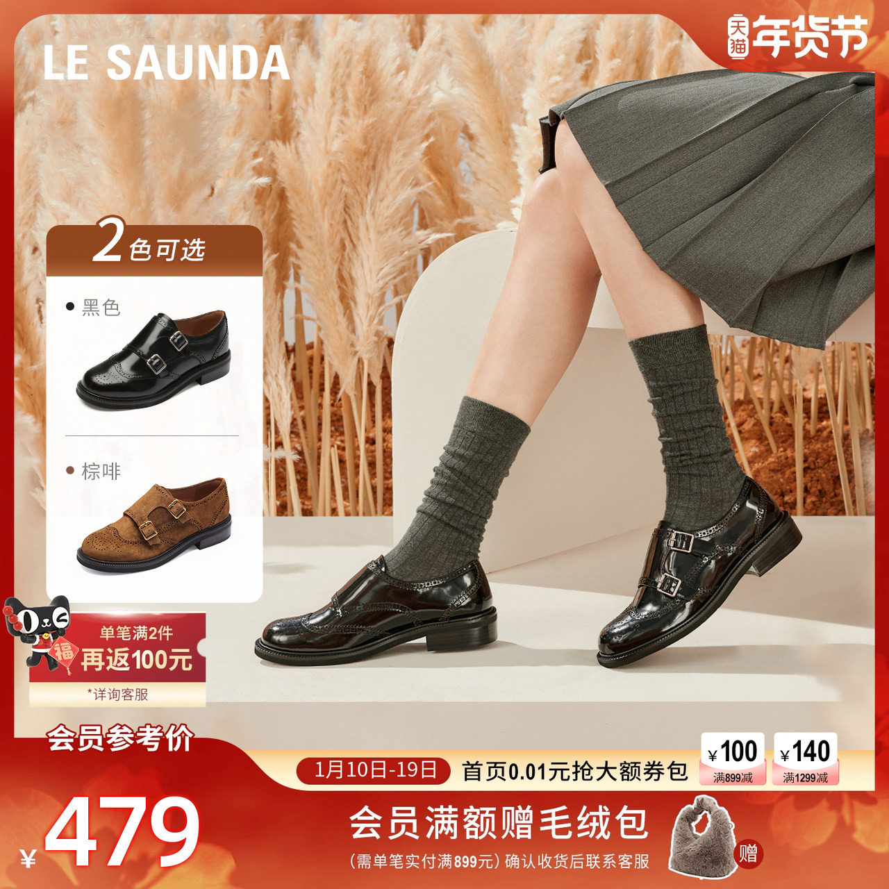莱尔斯丹时尚圆头休闲复古布洛克系带平底深口鞋女单鞋5T43501