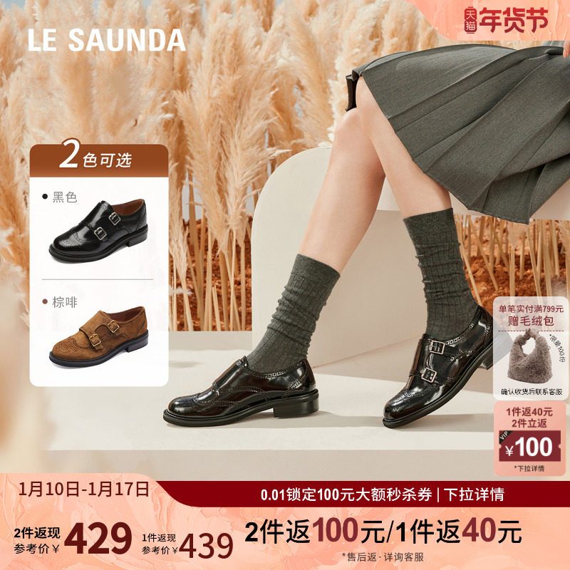 达芙妮英伦风小皮鞋女冬季乐福鞋2025新款深口女鞋系带布洛克单鞋
