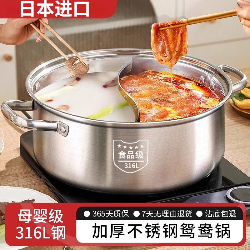 德国进口316不锈钢鸳鸯锅火锅家用电磁炉专用锅具单锅鸳鸯大号