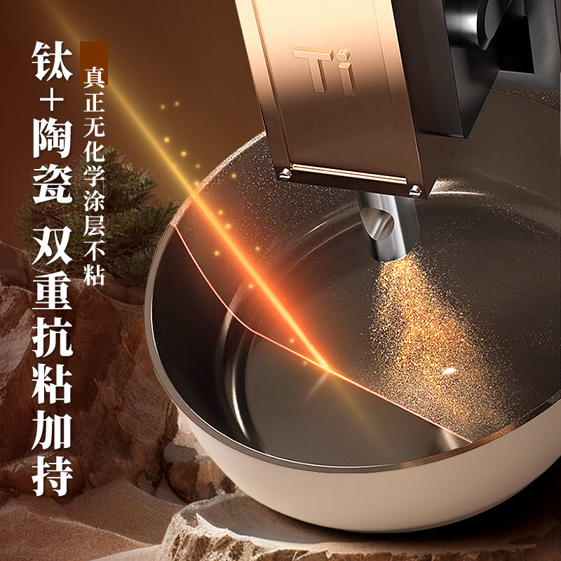德国进口钛陶瓷炒锅家用不粘锅平底有钛无氟不沾炒菜锅燃气灶电磁